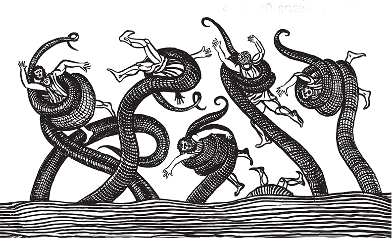 Чуть-чуть не успел. Надо же было тому случиться, чтобы Посейдон в это время возвращался от эфиопов – скакал над морем на своей колеснице. Семь лет он не вспоминал об Одиссее, отлучённом от паруса. А тут, представьте, опять – этот дерзкий ахеец, ослепивший сына его, циклопа, как ни в чём не бывало переплывает море с ветром попутным. И почти доплыл до земли! Что ли, боги ему помогают? Догадался Посейдон: пока отлучался он в края эфиопов, боги затеяли заговор против него, чтобы помочь Одиссею. Великий гнев обуял Посейдона. Схватил он трезубец и стал им размахивать и мешать – путать ветры, возбуждать море до самого дна.