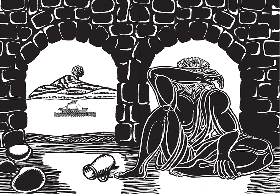 Вот бросает волна на скалу Одиссея – не за что ухватиться ему на отвесной стене; падает вниз Одиссей, в пенящуюся пучину, оставляя на камне кожу своих ладоней.