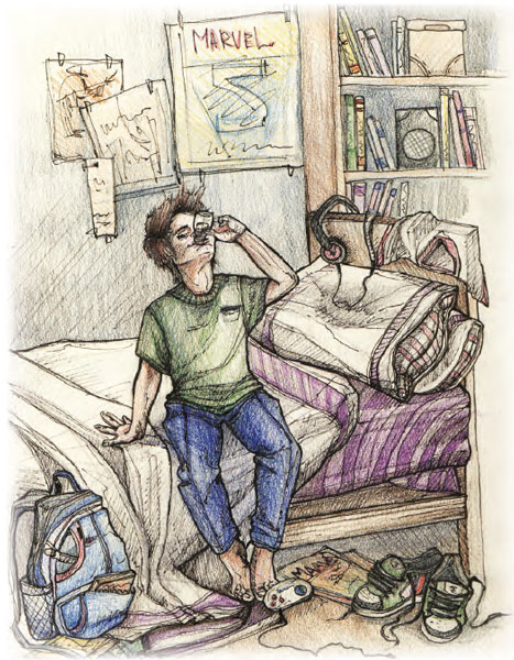 Мама разбудила Димку еще пять минут назад, включила свет и вышла из комнаты, а он, хотя и смог сесть на краю кровати, но был не в состоянии заставить себя подняться на ноги. Полный упадок сил! Как будто его и на самом деле оглушили боевым молотом, лишив почти всей жизненной энергии… Электрический свет неприятно резал глаза, а по плечам и спине пробегали противные зябкие мурашки, хотя в комнате было достаточно тепло.