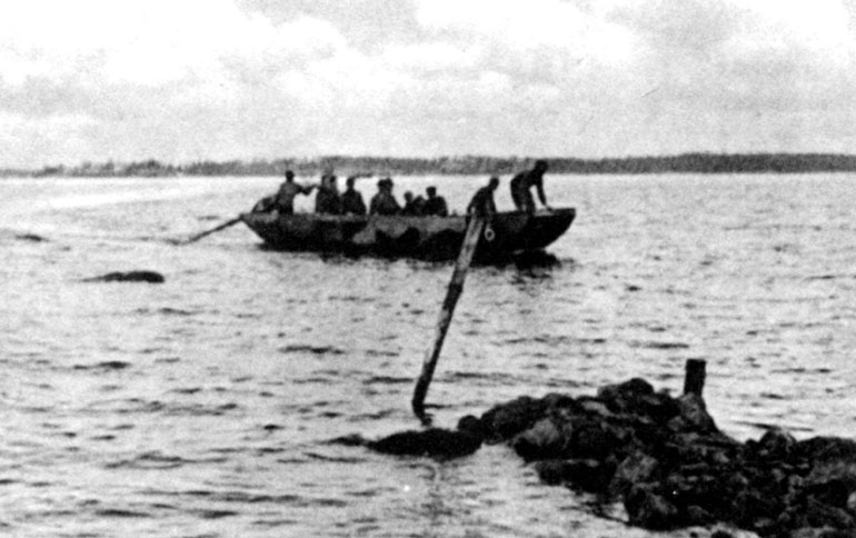 Согласно описанию боевых действий Койвистского погранотряда[45], финский десант был высажен на остров 25, а не 29 августа – что более похоже на правду, потому что к 29-му борьба за Выборгский залив уже практически завершилась. Доложившему о высадке командиру заставы лейтенанту Девятых было приказано до последней возможности удерживать противника на северо-западной оконечности острова, дабы дать возможность эвакуировать артиллерийскую батарею с Туппурансари, лежащего в 2,5 километрах к югу. Пограничники и моряки выполнили свой долг – враг сумел захватить Тейкарсари, только высадив на него еще одну роту. Более никакой информации о бое не поступало, потому что в самом его начале была разбита радиостанция заставы, и связь с гарнизоном прекратилась. На единственной моторной лодке с острова удалось эвакуировать шесть раненых, еще несколько человек позднее добрались до Койвисто на плоту.