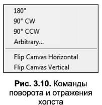 Photoshop позволяет выполнить поворот и зеркальное отражение всего изображения при помощи команды Image (Изображение) | Image Rotation (Вращение изображения). Действие будет применено ко всему документу, а не к отдельному слою или выделению.