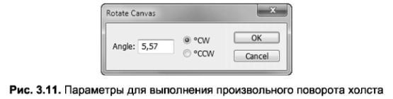 Примечание. Возможность выполнения произвольного поворота полезна при дополнительном использовании инструмента Measure (Линейка) (подробнее об этом см. в главе 8 «Общий инструментарий»).