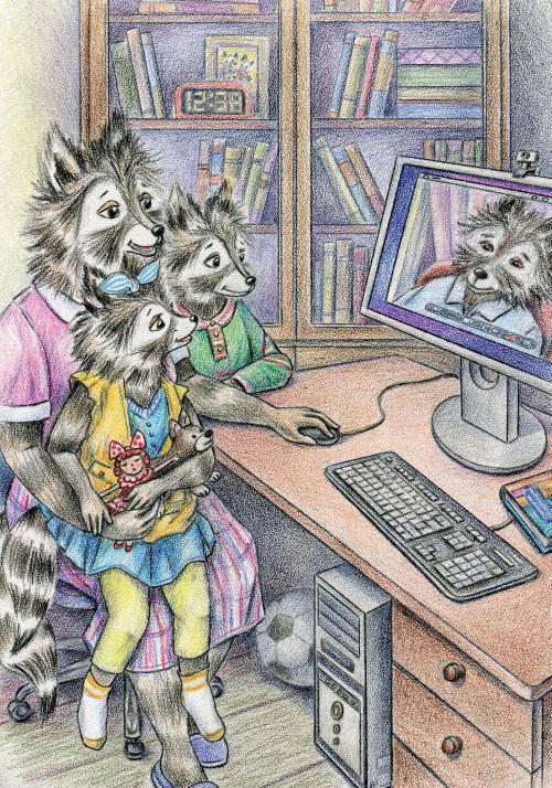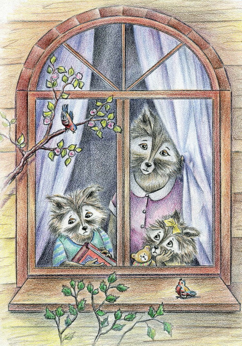 Енотики уже много дней не гуляли, старались не выходить из дома. Продукты им привозили бобры-курьеры.