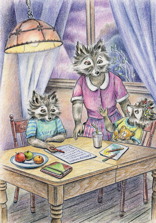 Еля кивнула и отправилась за блокнотом и ручкой. Усевшись за столом, енотики начали играть.