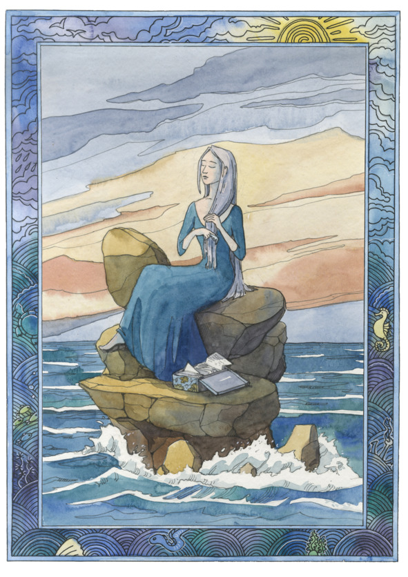 «Морской конёк» провёл у скалы целый день. На закате моряки пили чай на палубе вместе с ундиной. Она задавала им миллионы вопросов – о корабле, о людях, о жизни на суше, о зверях и птицах, живущих вдалеке от воды. О песнях, которые там поют, о сказках, которые там рассказывают.