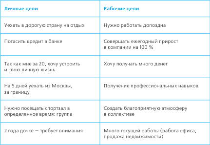 Для того чтобы вам было легче сформулировать свои цели, приведу два столбика, что пишут люди на тренингах. Первый столбик – личные цели, второй – рабочие.