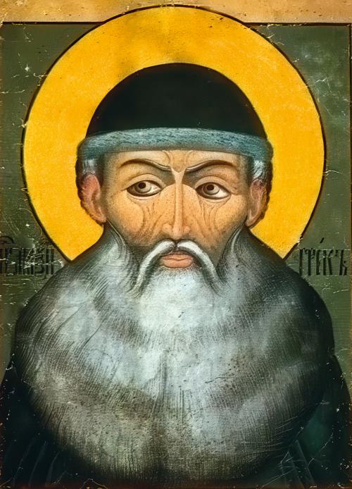 Преподобный Максим родился в богатой греческой семье (в Албании), получил блестящее образование. В юности он много путешествовал и изучал языки и науки в европейских странах; побывал в Париже, Флоренции, Венеции. Возвратившись на родину, он предпринял поездку на Афон и здесь принял постриг в монашество в Ватопедском монастыре, где кропотливо изучал древние рукописи. В это время великий князь Московский Василий Иоаннович (1505–1533) пожелал разобраться в греческих рукописях и книгах своей матери, племянницы последнего византийского императора Софии Палеолог. Он обратился к Константинопольскому патриарху с просьбой прислать ему ученого-грека. Тогда-то афонский монах Максим был отправлен в Москву. По прибытии ему было поручено перевести на славянский язык толкование на Псалтирь, затем толкование на книгу Деяний Апостолов и несколько Богослужебных книг.