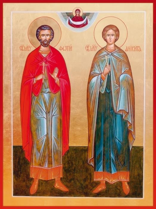 Так Господь хранил Своего раба для утверждения многих. Племянник мученика – святой Фотий – приветствовал страдальца и, обратившись к царю, заметил: «Идолопоклонник, твои боги – ничто!» Меч, занесенный над новым исповедником, поразил самого палача. Мучеников посадили в темницу. Через три дня Диоклетиан стал уговаривать их: «Поклонитесь богам нашим, и я прославлю вас и обогащу». Мученики отвечали: «Погибни ты со своею честью и богатством!» Тогда их привязали за ноги к диким коням, но святые, влачимые по земле, оставались невредимыми. Не пострадали они и в накаленной бане, которая развалилась. Наконец, Диоклетиан велел разжечь огромную печь, и множество христиан, воодушевленных подвигами святых Фотия и Аникиты, сами ступили в нее со словами: «Мы христиане!» Все они скончались с молитвою на устах. Тела святых Аникиты и Фотия не пострадали от огня, и даже волосы их остались целы. Видя это, многие из язычников уверовали во Христа. Это событие произошло в 305 году.