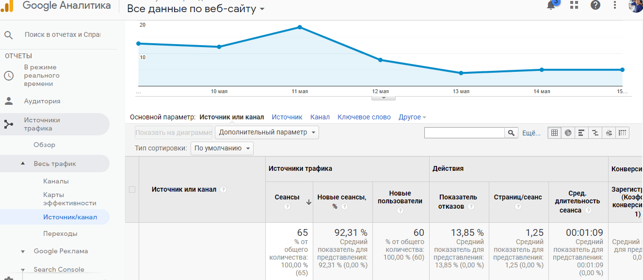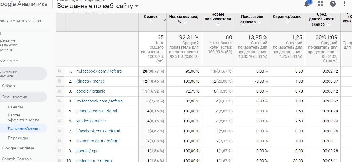В результате вы получите список ключевых слов и источников трафика, по которым посетители попадают на страницу. Информация улучшит понимание, что именно ищут люди и даст идеи для изменения или дополнения контента для улучшения позиций в поиске.