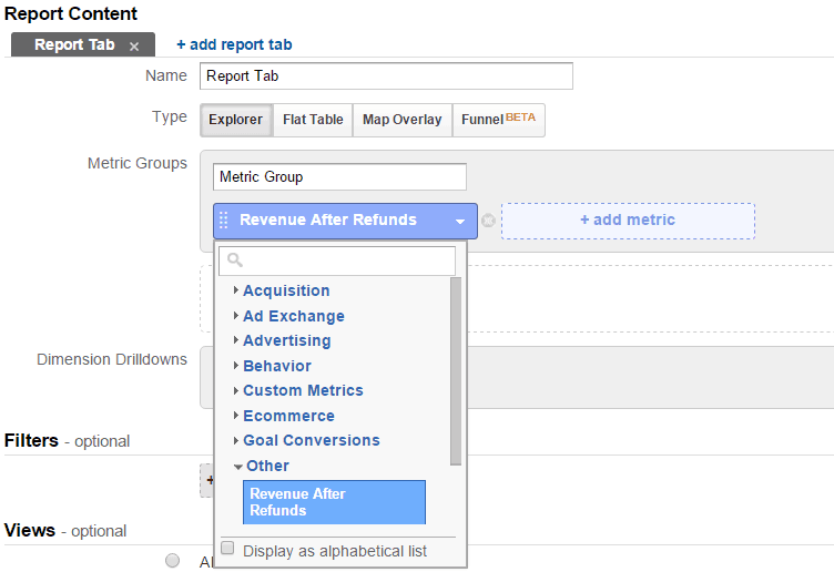 Его легко настроить по мере того, как данные станут доступными. Например, расчетный показатель относительного дохода на одного пользователя можно установить, используя {{Revenue}} / {{User}}.