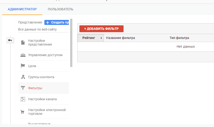 Создать фильтры не сложно. Можно создать все фильтры на уровне аккаунта, войдя в панель администратора (нажмите шестеренку в нижней части страницы), а затем назначить их для различных представлений. Сначала всегда нужно использовать для этого Sandbox (или Test) View, а затем применять его непосредственно для работы.