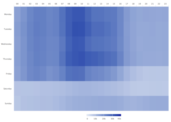 Строить "тепловые карты" по времени суток с отличной наглядностью представления данных.