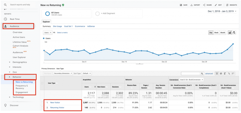 Отчет о новых и возвращающихся посетителях говорит сам за себя.