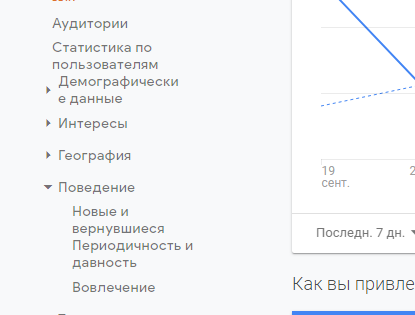 Отчет Аудитории в Google Analytics позволяет анализировать поведение людей, посещающих сайт. Эта опция находится в основной категории Аудитории в левой навигационной панели.