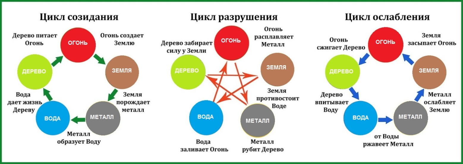 Каждый из них усиливал последующую, (например, вода развивает дерево),