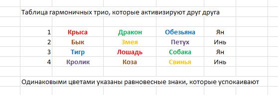 Крыса – Дракон – Обезьяна, (первая триада знаков-Инь),