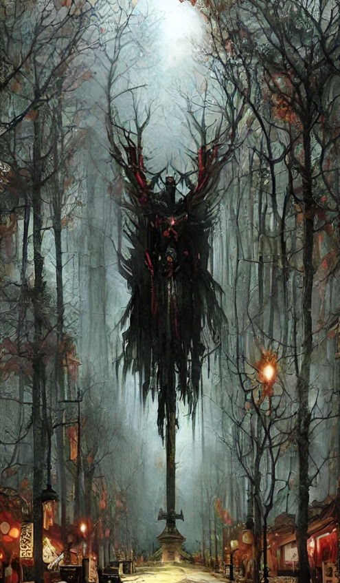 Человек обернулся, почувствовав сзади, на шее зловонное дыхание. Перед лицом светились два огромных яростных глаза. Они излучали мертвенно-синий свет и животное безумие. Клацнула пасть. Мощный и резкий удар в висок свалил человека с ног. Человек потряс головой, чтобы прийти в себя. Тёплая жидкость капала на руки. Не давая, опомнится монстр прижал человека к земле, разорвал шею и вырвал зубами кусок щеки человека. Жадно вкушая кусок щеки человека, монстр вдруг замер.