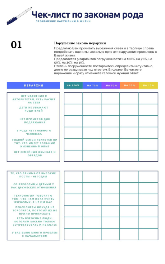 Рис. Чек-лист по закону иерархии