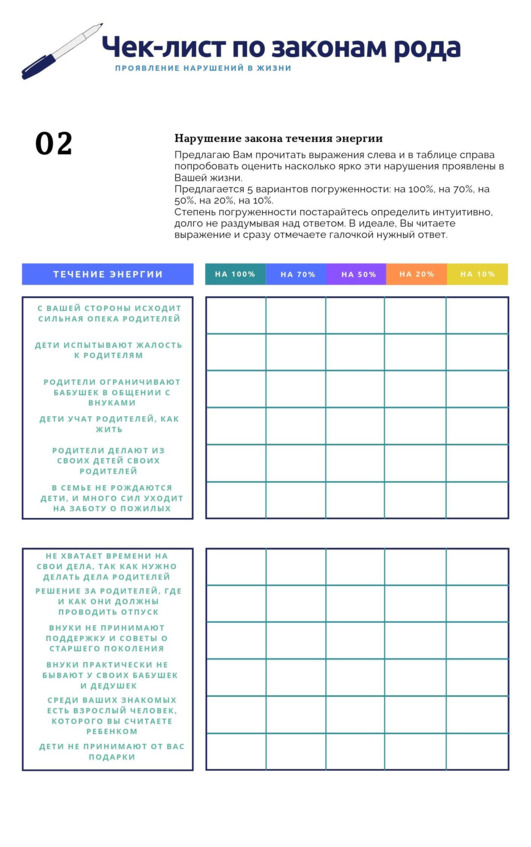 Рис. Чек-лист по закону течения энергии