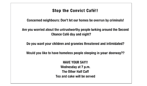 All publicity might be good publicity, but the leaflet that’s been pushed through every letterbox on the square won’t exactly bring the punters in for a cuppa, will it?