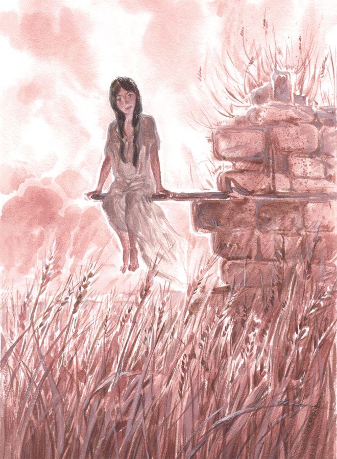 Девчонка сидела на прогнившей доске. Доска одним краем ещё крепилась к стене, другой завис над зарослями полыни. Веса в девчонке было немного, к самой земле она доску не накренила, просто босые пятки и подол рубахи тонули среди горько пахнущих стебельков. Полынь называлась Artemísia vulgа́ris. Так правильно. Коля для себя старался запоминать научные названия знакомых растений. Из интереса. И для подписей в альбоме гербария.