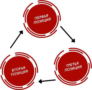 Если оппонент находится во второй позиции – что-то продаёт, договаривается, выясняет ваши потребности, «щупает» вас, то вам следует занять первую позицию. Если вы присоединитесь к позиции оппонента, то достигнете компромисса, разделите что-то, но не выйграете. Чтобы взять все ресурсы нужна первая позиция. Здесь оппонент, который исходит из ваших позиций, проигрывает, если вы занимаете глухую оборону и стоите на своём.