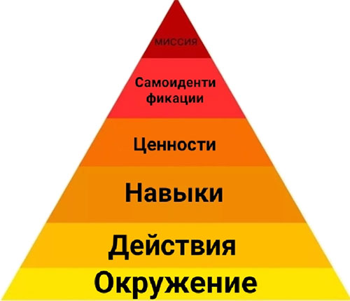 6. Миссия. Примеры. "Ради кого ты являешься тем, кто ты есть? Во имя чего ты всё это делаешь? Зачем ты живёшь? Ради кого ещё? Кому ещё это важно? Для чего в рамках общества?" Это духовный уровень свободный от эгоизма и эгоцентризма.