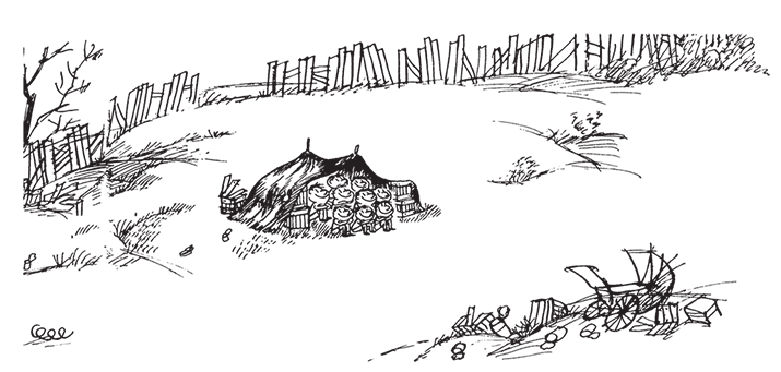 Из-за того что в палатке было совсем мало места, оплеухи доставались нам всем, а потом ящики упали, и вылезти из-под одеяла оказалось очень трудно, но всё равно всем было страшно весело. Только Жоаким разозлился. Он топтал одеяло ногами и кричал: