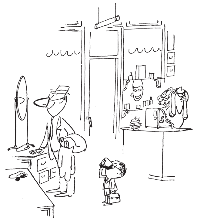 Сегодня после обеда меня провожал в школу папа. Я люблю, когда меня провожает папа, потому что он часто даёт мне деньги на всякую всячину. И на этот раз тоже так случилось. Мы проходили мимо магазина игрушек, и я увидел в витрине картонный нос, который надевают, чтобы посмешить друзей.