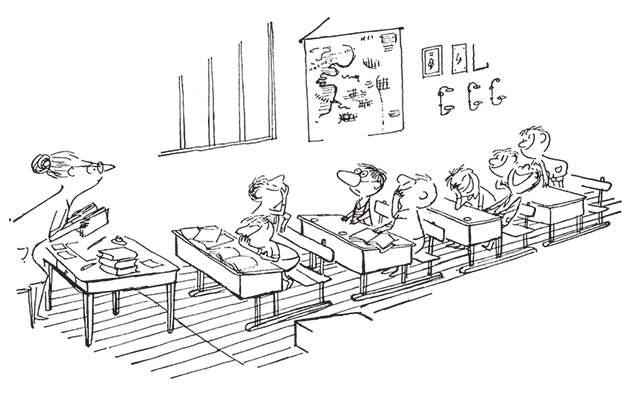 Мы уже вошли в класс, а Альцеста всё ещё не было. Учительница очень удивилась.