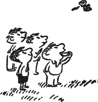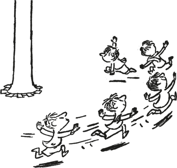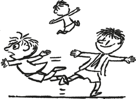 И Руфюс, Жоаким и Мексан расставили руки в стороны и стали бегать и делать «вррр», только Максан свистел: он бегает быстрее всех и поэтому сказал, что он реактивный самолёт. Мы с Клотером и Альцестом не были согласны. Ну правда, что такое? Вечно Мексан начинает командовать! Мы стояли на месте, а Мексан, Руфюс и Жоаким вернулись и стали бегать вокруг нас, делая «вррр, вррр».