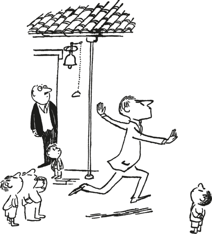Потом началась перемена, и мы спустились во двор. Там все принялись бегать, кричать: «Давайте играть!» – и дразнить Жоффруа, который стоял один. У Жоффруа с собой был пакет, он открыл его и достал пожарную машину, она была вся красная, с лестницей и колоколом. Мы носились повсюду, кричали и веселились, потому что с хорошими друзьями всегда весело, а потом Альцест решил посмотреть на машину Жоффруа.