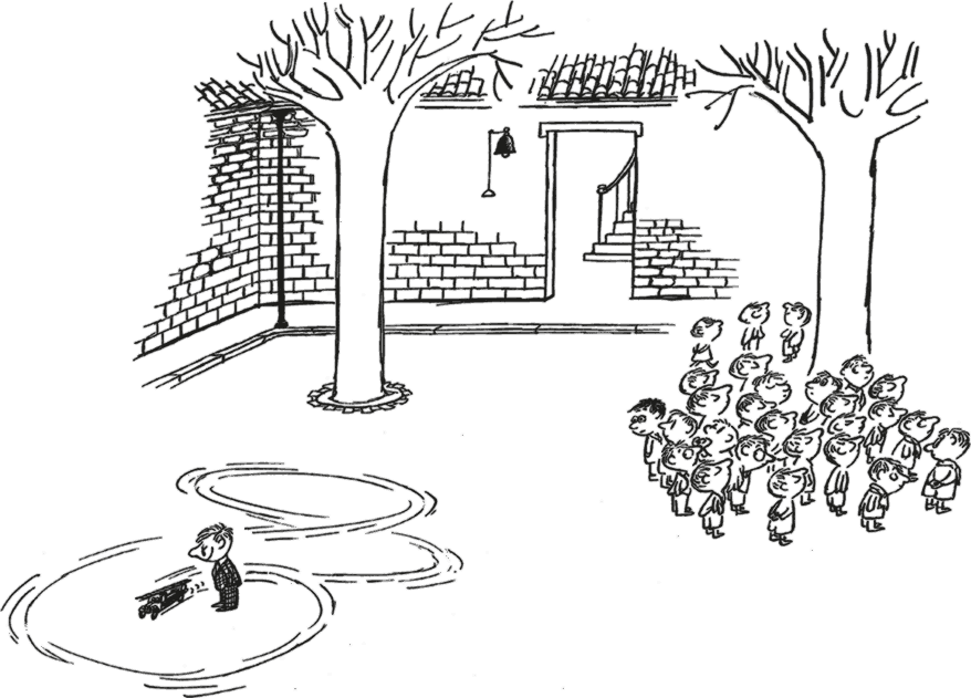 Мы спокойно сидели в классе, слушали учительницу, а она рассказывала, что у Сены полно излучин, и только она повернулась к нам спиной, чтобы показать Сену на карте, как – бабах! – взорвалась петарда. Дверь в класс открылась, и мы увидели директора.