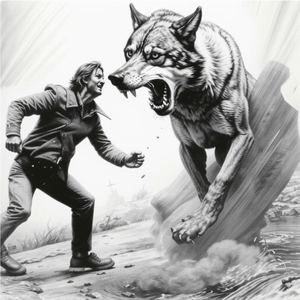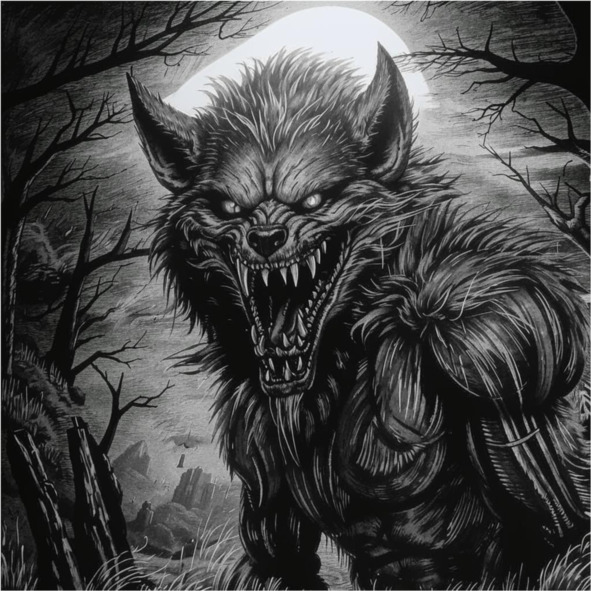 Вечером поздним сидел за столом,В окна луна светила в мой дом,Спать не хотел Лавкрафта читал,Пил я вино и горя не знал,Вдруг я услышал скрежет снаружи,Голову поднял сидел я и слушал,Звук словно когти чешут об доску,Вспомнил что утром подкармливал кошку,Потом зарычало возле колодца,И сильный ветер стучал мне в оконце,Вроде в кустах кто-то согнулся,Мне показалось, и я матюкнулся,Но вскоре хрипы жуткие звуки,Тени деревьев ко мне тянут руки,Слышал я хруст чавканье хрюки,Хватит довольно это лишь глюки,Шторку завесил убрал злые тени,Выпил вина и присел на постели,Слышу во тьме опять рыщут звери,Кто-то клыки точит об двери,Я как ребёнок боюсь темноты,Это собака сыт на кусты,Я закурил сделал шаг прочь,Дверь приоткрыл и ступил в ночь,В грудь мне ударили и сбили с ног,Я приложился башкой о порог,Кто-то большой был и волосатый,Ногу царапнул и скрылся проклятый,Пришёл я в сознанье лишь по утру,Мне это всё не по утру,Кто это был я не пойму,Помню глаза светились в кусту,Грязный лежу замёрз я не много,Надо вставать и подлатать ногу,Рана была хоть не большая,Но кровь текла не много хромаю,В дом я зашёл выпил не много,Йодом из шкафа помазал я ногу,Больно в груди в ноге в голове,Я обессилен поспать надо мне,Снились кошмары снились омбалы,Все волосаты и каннибалы,Вскочил я с кровати в холодном поту,Сейчас уже ночь кричу в тишину,Нога заболела на много сильней,Завыл на луну как раненый зверь,Смотрю я на ногу пульсирует рана,Вздымается кожа – это всё странно,Шерстью покрылась вся моя кожа,Вытянулась вся моя рожа,Ногти сломались когти сверкнули,Уши длиннющие как у горгульи,Выплюнул зубы с кровью я на пол,Нравится мне её сладкий запах,Клыки обнажились сверкнули глаза,И за окном грохочет гроза,Выкрутила меня на изнанку,Как это больно кусал свою пятку,Треснули рёбра кости сломало,Лопнули мышцы кожа слезала,Вмиг натянула мне сухожилья,Как это больно сразу завыл я,Лапы косматые вмиг удлинились,Чувства внутри все обострились,Нос мой учуял девственный запах,Я к нему шёл на задних лапах,Уши услышали стоны желанья,С воем бежал я на свиданье,Похоть желанье двигали мной,Брызгал слюной возбуждённый и злой,В нежную плоть я хотел засадить,Зло отыметь, а потом закусить,Стал я животным меня не простить,Сложно любить сложно убить,Буду в лесу я вечно жить,Буду у всех прощенье просить.P.S. – слышишь ты вой тебе друг не жить.