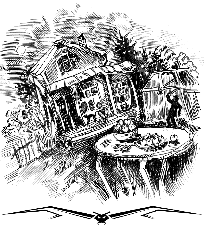 Стол был уставлен «дарами темных растений», из которых дед прекрасно умел готовить. Ябломятликовое варенье в хрустальной ногастой вазочке, пирожки с упырикой, жареные кольца чупакабруса – разновидности кабачков багрового цвета…