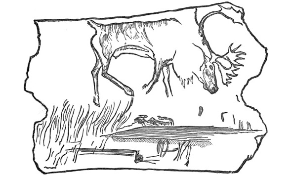Рис. 21. Гравюра палеолитического человека на роге северного оленя.