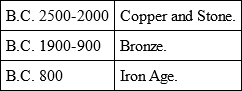 According to Montelius of Stockholm an absolute chronology can now be given for periods of prehistoric civilisation in Europe, because Copper, Bronze, and Iron Ages are contemporaneous with an historic period in Egypt and Western Asia, and also because numerous points of connection are known between the different parts of Europe and the East from the beginning of the Copper Age onwards.