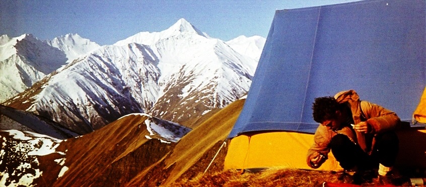 29.04.1991. Утро, какое нас встречает утро! Небо синее и внизу, между чёрными бортами ущелья, белая вершина Донос-Мта, с красиво изогнутым гребнем и привлекательными окрестными вершинами. Сегодня мы намерены наверстать упущенное вчера. Дорогу ищем на левом склоне притока, по которому идём, но вовремя отказываемся от этой затеи. Вскоре мы у начала тропы, уходящей наверх. Поднимаемся на перегиб и видим место слияния Данейламхи и Шаро-Аргуна, так называемое сухое озеро.