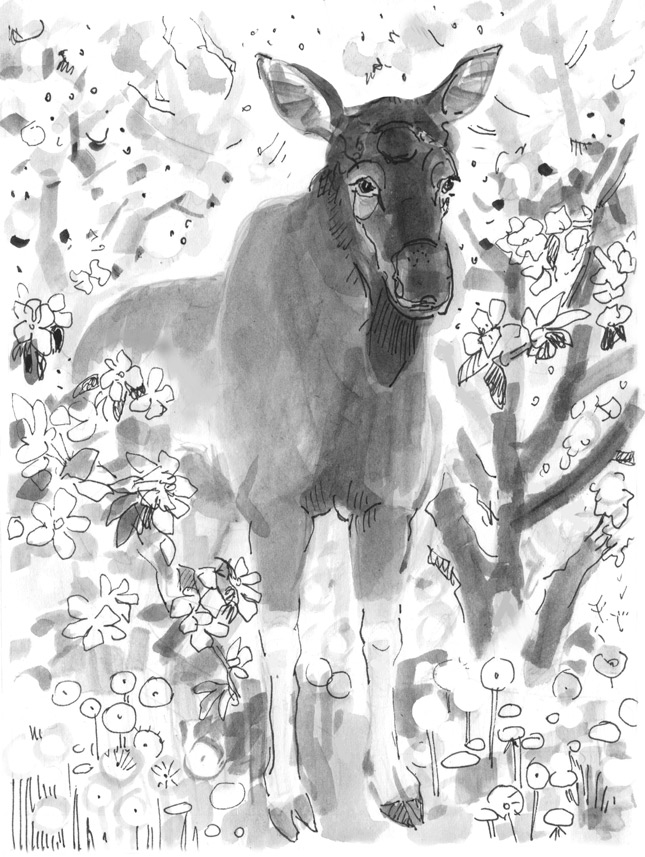 «У нас теплые дни, но иногда, правда, ветреные. Сегодня был безветренный день, и мы с Вероникой далеко ушли после суеты с животными. Сосновые леса переходили в ольховые, березовые, мхи устилали поляны, стеной стоял отцветший и поэтому белесый на верхушках кипрей. Песок под ногами на проселочной дороге струился. Такой чистый песок, как из песочных часов. И мы ходили по нему. Шли, шли, шли. Лосиные мухи иногда на нас садились. Неприятно, конечно, но не страшно. Вдруг, пройдя лесной поворот, услышали дробный стук копыт (в такой глуши!), а у лосей сейчас как раз время гона. У меня сердце подпрыгнуло, ну, думаю, лось! Полундра! Прячься кто может! Лось страшен во время гона! А показалась дорожная кибитка.