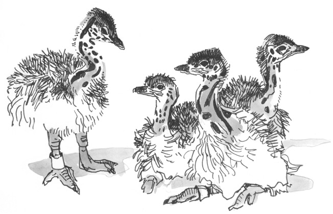 Страусята гуляли во дворе, росли и очень быстро стали уже видны из-за забора.