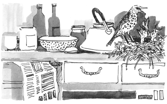 Совы часто селятся на чердаках. Дроздиные гнезда мы находили на прогнивших балках. Дом зарос весь одичавшей красной смородиной, и висит среди веточек гнездо.