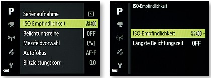 Daher ist es empfehlenswert, eine der beiden Optionen im Untermenü Begrenzte ISO-Autom. einzusetzen. Dabei können Sie wählen, ob die ISO-Automatik Werte bis ISO 400 oder ISO 800 einstellen soll. Da bei ISO-Werten über ISO 400 die Bildqualität leidet, empfehle ich Ihnen die erste Option, die Sie nachfolgend in der rechten Abbildung sehen.