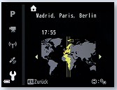 5 Wenn Sie in ein Land mit einer anderen Zeitzone verreisen wollen, ist die Option Zeitzone Reiseziel sinnvoll. Nach Angabe der Zeitzone wird die Zeitverschiebung automatisch berücksichtigt. Um zwischen der Wohnortzeit und der Reisezielzeit zu wechseln, müssen Sie nach der Auswahl des betreffenden Eintrags die OK-Taste drücken, sodass dieser Eintrag aktiviert wird.