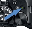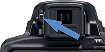 Das Rädchen links neben dem Sucher dient zum Einstellen des Dioptrienausgleichs. Daher können Sie Ihre Brille abnehmen und den Dioptrienausgleich von –3,0 bis 1,0 dpt an Ihre Fehlsichtigkeit anpassen.