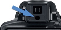 Das Monitorbild ist bei hellem Licht nur schwer zu erkennen. Der Sucher verfügt über einen sogenannten Augensensor, den ich im folgenden Bild markiert habe. Sobald Sie sich dem Sucher nähern, wird der Monitor standardmäßig aus- und der Sucher eingeschaltet.