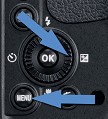 Vor dem Zoomhebel am Objektiv finden Sie die sogenannte Überblickstaste, der aufgrund der maximal möglichen Brennweite von 2000 mm eine große Bedeutung zukommt. Die Taste ist im Bild rechts unten auf der gegenüberliegenden Seite mit dem linken Pfeil gekennzeichnet.