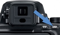 Mit der nachfolgend markierten DISP-Taste wechseln Sie zwischen verschiedenen Darstellungsmodi. Wenn Sie die Standardanzeigen auf dem Monitor bei der Bildbeurteilung stören, können Sie diese alternativ ausblenden – drücken Sie dazu die DISP-Taste mehrfach.