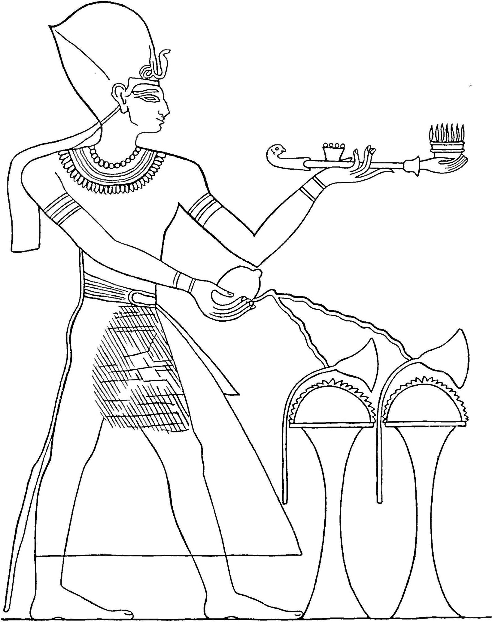 1. şekil: Tütsü Yakmanın ve Libasyonun Geleneksel Bir Tasviri (Yeni İmparatorluk Dönemi – Lepsius Sonrası)
