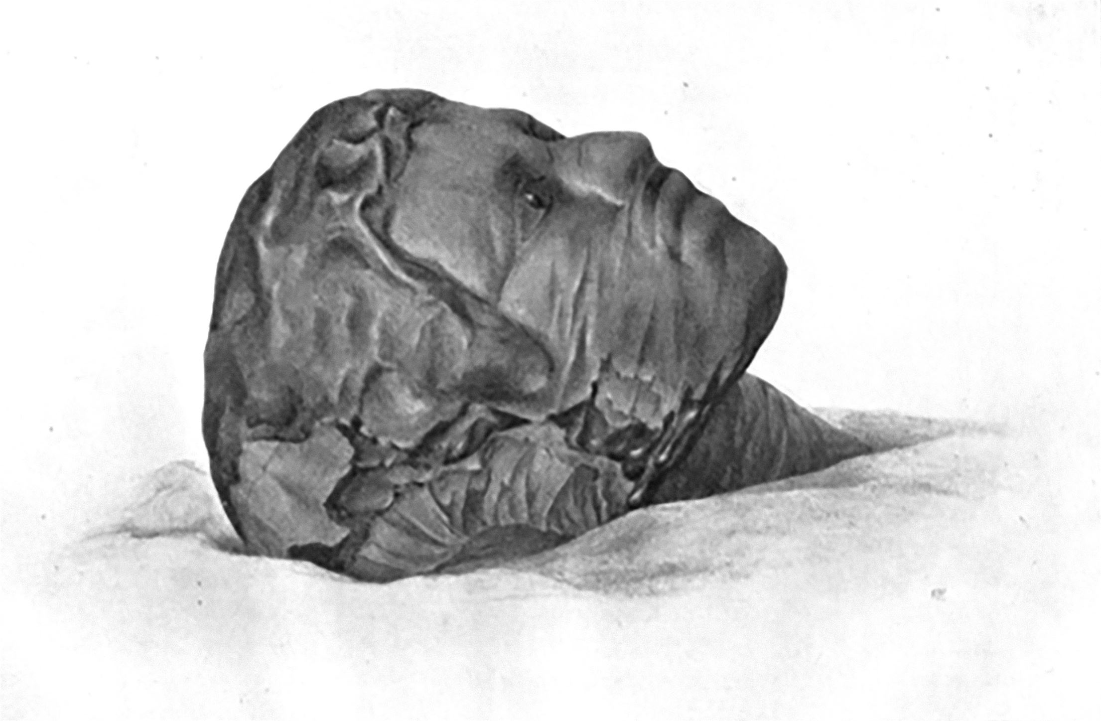 Mısırlıların mumyalama teşebbüslerinin bilinen ilk örneğinde (İkinci Haneden) ceset bedenin şeklini temsil edecek şekilde çok sayıda bandajla sarılır. 1892’de Profesör Flinders Petrie tarafından Medûm’da bulunan muhtemelen Beşinci Hanedan dönemine ait mumya, reçine zamkı sürülmüş üstünkörü bir bandajla sarılıdır; vücudun şekli, plastikle kalıba dökülmüştür. Yüzün modellenmesine,25 organların yeniden üretilmesine, kimliğin ve cinsiyetin anlaşılmasına hiçbir kuşku bırakmayacak kadar itina gösterilmiştir. Profesör Junker, bu uygulamanın ilginç çeşitlerini tasvir etmektedir.26 İki mezarda da vücutlar, alçıyla sıva yapılarak kaplanmıştır. Öncelikle ceset iyi bir keten kumaşla sarılıp üstüne sıva yapılmış ve en son bedenin şeklinde kalıba dökülmüştür (s. 252). Ancak diğer iki örnekte vücudun tamamı kaplanmamış, yalnızca başları alçıyla kaplanmıştır.