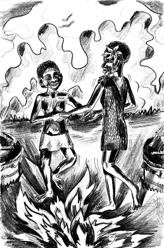Маня, преследуя ту же цель, вечером, после трудового дня, стала собирать у костра женщин и детей. Она учила их несложным танцевальным движениям, чувству ритма, простым песенкам. Поначалу они стеснялись, прятались друг за друга, хихикали. Как всегда, на помощь пришли Чак и Зоо. Они первыми, взявшись за руки, пустились в пляс, смешно виляя бёдрами, и корча смешные рожицы. Их веселье заразило всех остальных и сняло напряжение. Постепенно, привлечённые общим весельем, к ним стали присоединяться и мужчины. Поначалу они только смотрели, хмуро глядя на танцующих. Ведь танцы в их племени раньше носили чисто ритуальный характер: перед охотой, во время похорон, или… когда